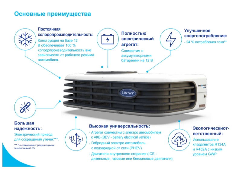 Постоянная холодопроизводительность: архитектура 12 В обеспечивает 100% мощности охлаждения независимо от режима работы транспортного средства.